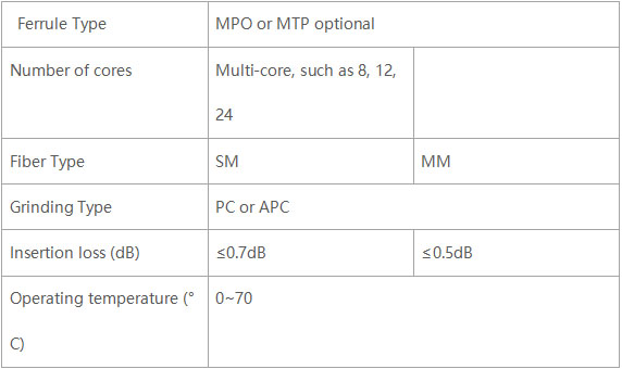 MPO or MTP fiber optic connector, optional number of cores.